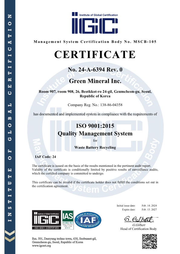폐배터리 리사이클링 전문기업 그린미네랄(대표 정광환)은 지난 12월 4일 서울 JBK 컨벤션홀에서 열린 '포스코..