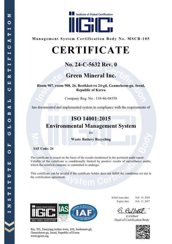 친환경 리튬 회수 기술 전문기업 그린미네랄, 넷제로챌린지X 선정