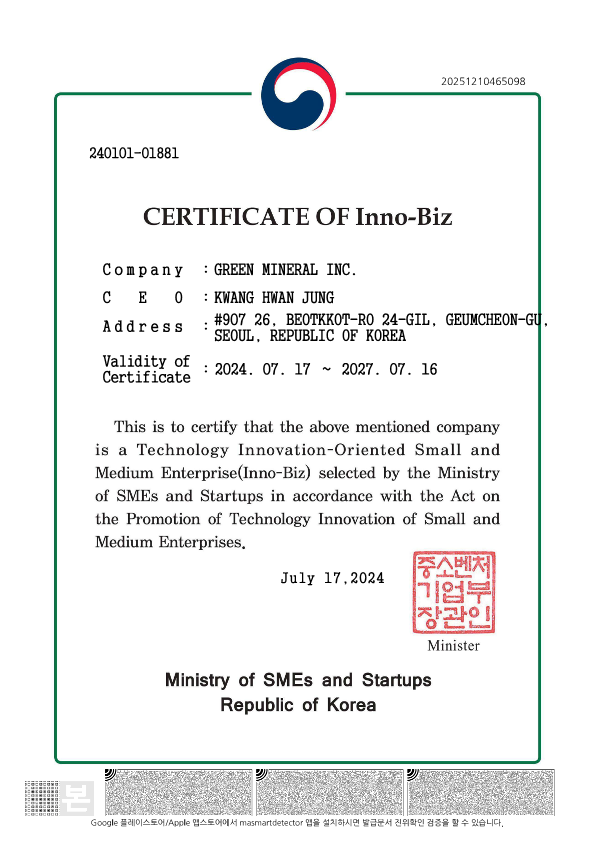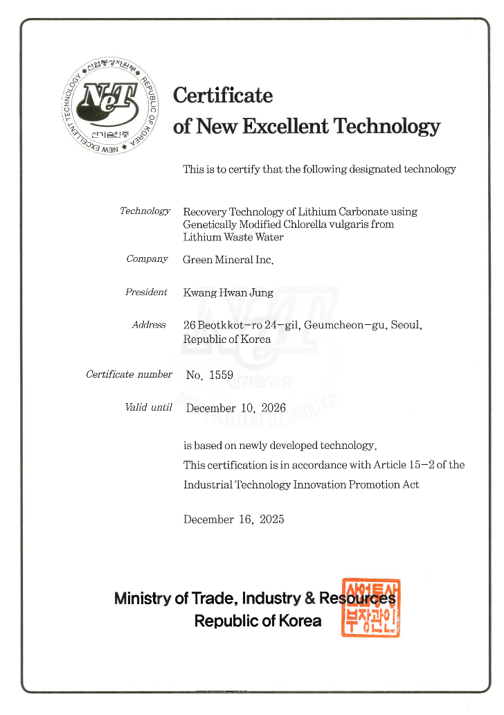 Green Mineral is a company that possesses eco-friendly lithium extraction technology from used electric vehicle batteries.